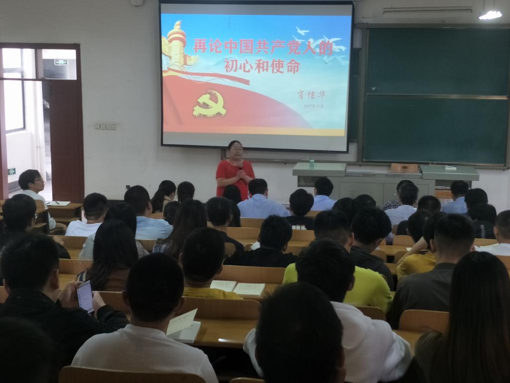 在中华人民共和国成立70周年之际,为进一步增强全体师生党员的党性修养,推动全体师生党员更加自觉地为实现新时代党的历史使命不懈奋斗。060net永利开展了主题为“再论不忘初心、牢记使命”的专题党课学习活动,重温党史,铭记初心。10月10日下午在8D-201,公司党委书记肖信华为全体师生党员讲授了题为“再论中国共产党人的初心和使命”的党课。