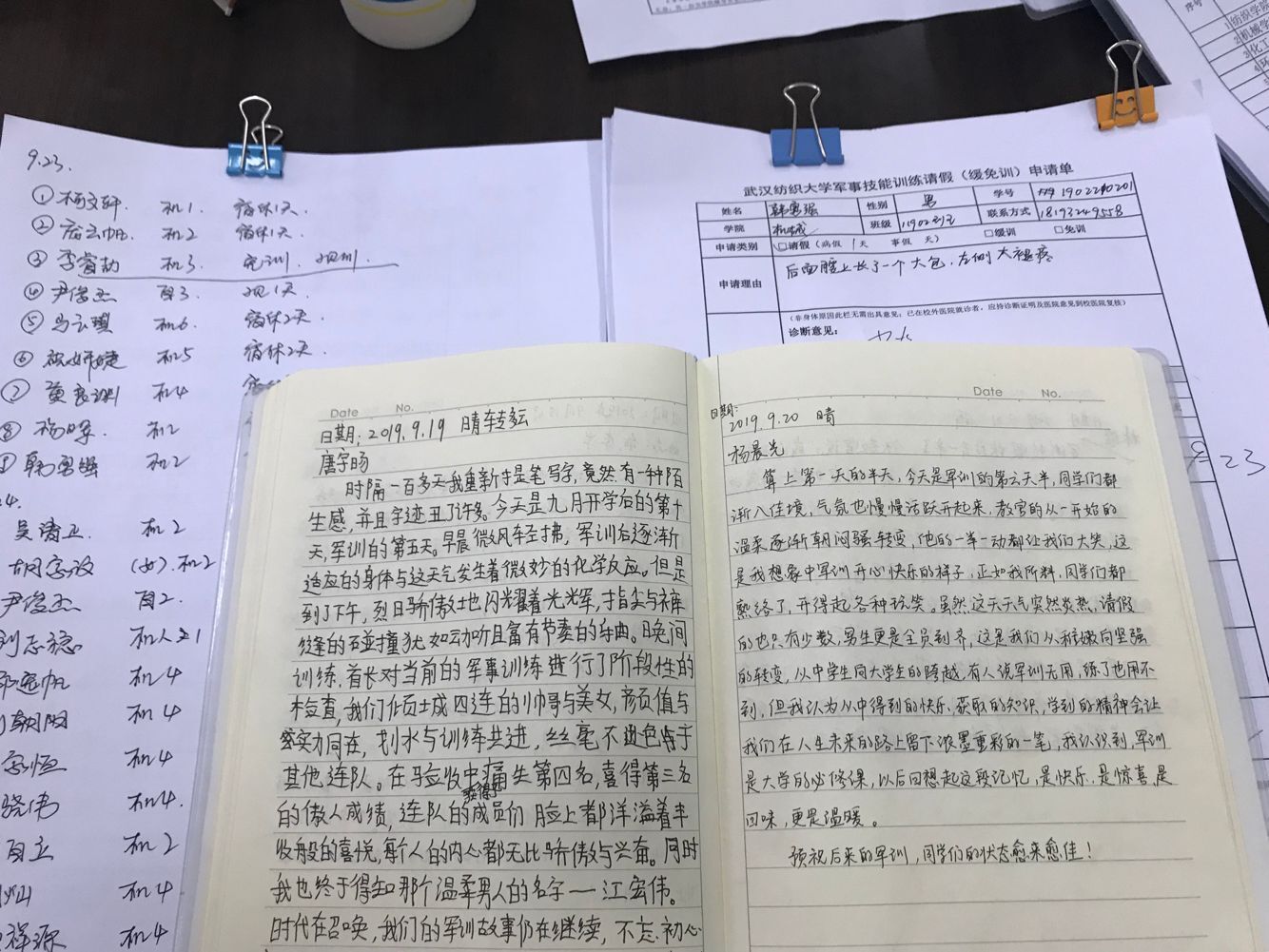 机械11902班罗婧资在日志里鼓励自己“新环境里小罗不要自闭,要做更好的自己”;机器人11901的白静文饶有兴趣地描述了开学第一天的“小意外”和令人激动的开学典礼;自动化11902的高云帆自豪地介绍了自己军训所在的“钢铁二连”;机械11904的工设的刘凯开心地表示今天教官终于带我们去一食堂吃饭了,训练场也从篮球场到了大操场,喜悦之情溢出纸面……