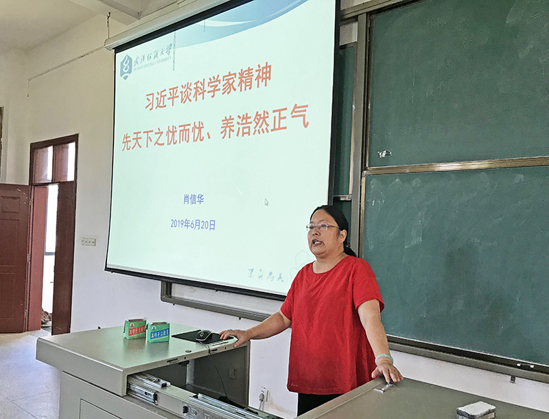 公司党委书记肖信华以《习近平谈科学家精神——先天下之忧而忧、养浩然正气》为题为全体教职工讲党课,带领大家学习了2018年5月28日习近平总书记在中国科公司第十九次院士大会、中国工程院第十四次院士大会上的重要讲话精神。肖书记在党课中指出:各位老师既是科技工作者,又是科技人才的培养者,要贯彻落实习近平总书记重要讲话精神,坚持党对科技事业的领导,坚持走中国特色自主创新道路,全力投身创新实践,勇攀科技发展高峰,切实担负起进军世界科技强国的时代使命。