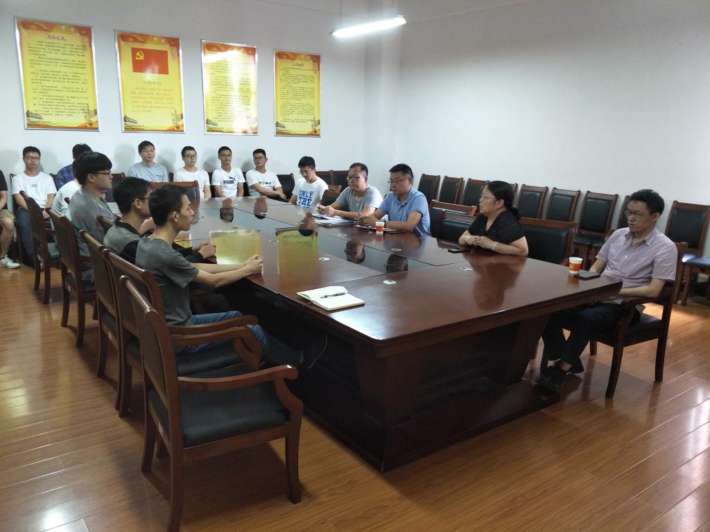 6月18日在8E411会议室,宜昌经纬纺机有限公司总经理聂俭、人事部经理张嵩林一行来公司考察交流,并与毕业生亲切交流。公司梅顺齐教授、公司党委副书记刘韦、毕业班辅导员老师参加了活动。本次交流活动由公司党委书记肖信华主持。