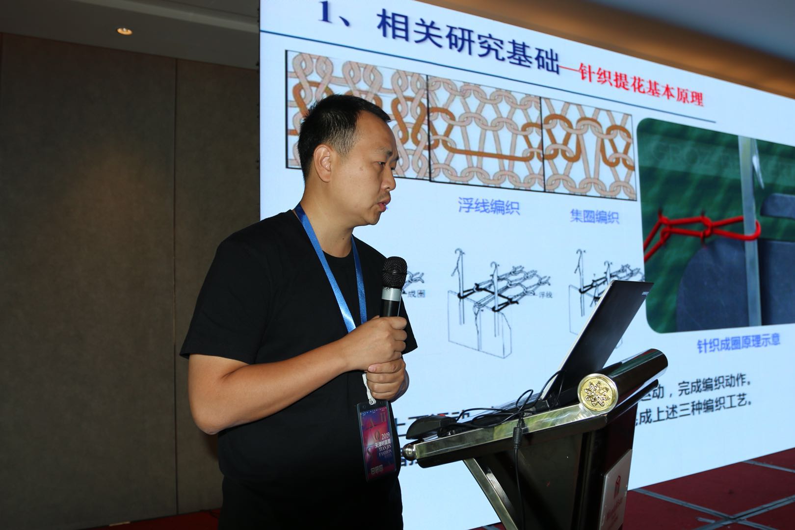 研讨会上张弛副教授代表公司数字化纺织装备设计与制造团队作了题为“磁悬浮式织针驱动原理及关键技术研究与实践”专题报告。该课题组提出磁悬浮式直接驱动织针提针模式,以零传动模式实现圆机的三功位编织工艺,下一步将努力提高磁悬浮织针工作频率,从而打破现有机械式织针驱动方式导致的针织圆机难以进一步提速的瓶颈限制,为针织圆纬机工作速率的提升提供可能和新方向。该报告得到了中国纺织工程学会针织专业委员会委员与纬编分会副会长、东华大学博士生导师龙海如教授的认可与好评。龙教授鼓励课题组早日将该项技术投入产业应用,并与公司教师合影留念。