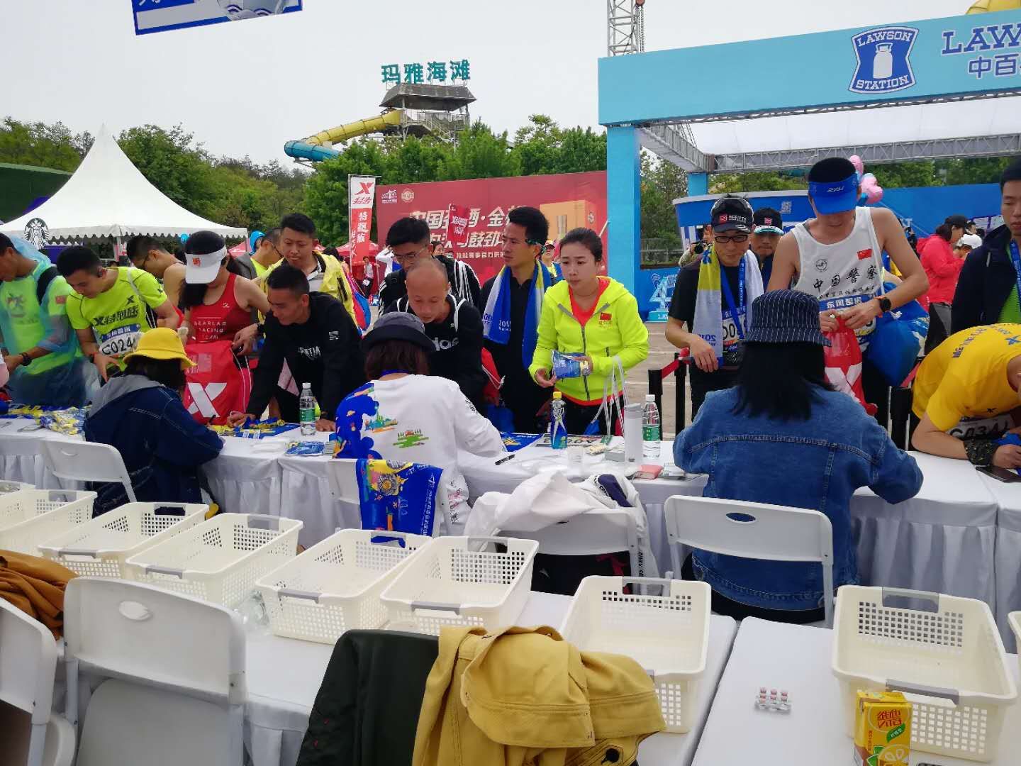 在汉马终点,几台机器同时运作为奖杯、奖牌刻字,迅速为1000多名姓名不一样的选手标刻奖牌。至此,武汉纺大李红军教授团队已连续4年以高科技助力“汉马”,每次零错误、高质量、高速度完成标刻的千余枚奖牌,获得选手们的高度认可和称赞。