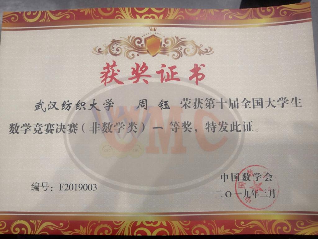 3月29日至31日, 由中国数学会主办、哈尔滨工业大学承办的第十届全国老员工数学竞赛决赛在哈尔滨举行。经过激烈角逐,060net永利2015级周钰同学在非数学专业组决赛中脱颖而出,荣获全国一等奖,决赛成绩排全国第二。这是公司学子首次在全国老员工数学竞赛中获国家级一等奖,也是公司参加该赛事以来取得的最好成绩。