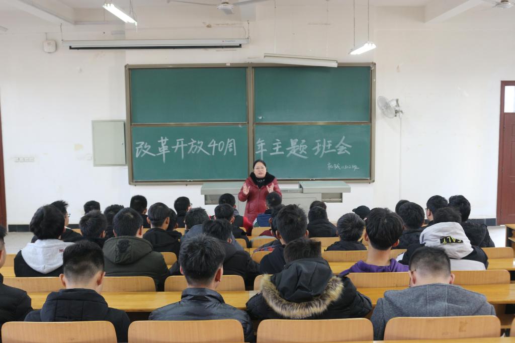 12月18日下午,060net永利党委书记肖信华作为机械类11802班班主任,组织全班同学开展了学习“庆祝改革开放40周年大会”精神的主题班会。
