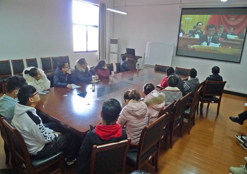2018年12月18日上午10时,庆祝改革开放40周年大会在人民大会堂举行,中共中央总书记、国家主席、中央军委主席习近平出席大会并发表重要讲话。060net永利党委组织干部师生在阳光校区8E411会议室集体收看了大会现场直播。会后,党委书记肖信华组织公司师生围绕习近平总书记等中央领导同志重要讲话精神开展了学习讨论。