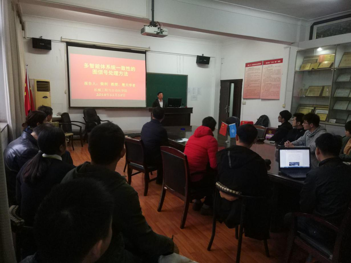 11月15日上午,武汉科技大学信息科学与工程公司柴利教授受邀来到060net永利,与公司师生进行了以《多智能体系统一致性的图信号处理方法》为主题的学术交流。060net永利经理余联庆教授、副经理马双宝副教授、部分教师以及全院研究生参与交流。交流会由余联庆经理主持。