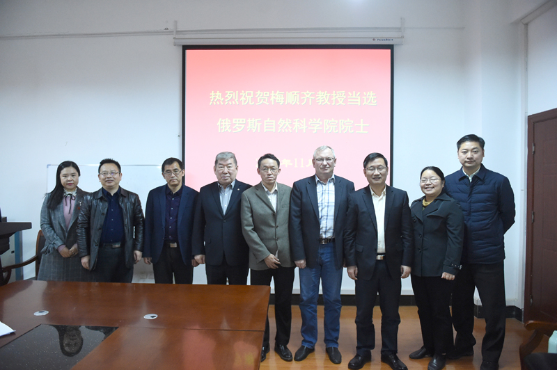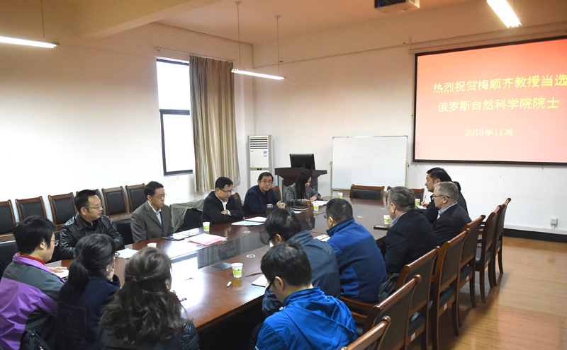 俄罗斯专家古丽耶夫介绍了俄罗斯自然科公司的历史、概况和发展现状,对梅顺齐教授当选俄罗斯自然科公司院士表示祝贺。