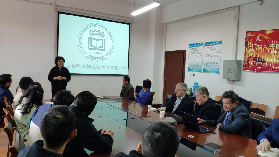 东西伯利亚国立技术与管理大学副董事长阿萨朵耶娃О .А向与会师生介绍了东西伯利亚国立技术与管理大学的办学历史与发展现状,机械制造系主任格列士洛夫А. Д 介绍了他们公司的研究方向和学科专业设置,国际部主任尚布耶娃Б.В介绍了他们公司国际合作办学、职工教育情况。