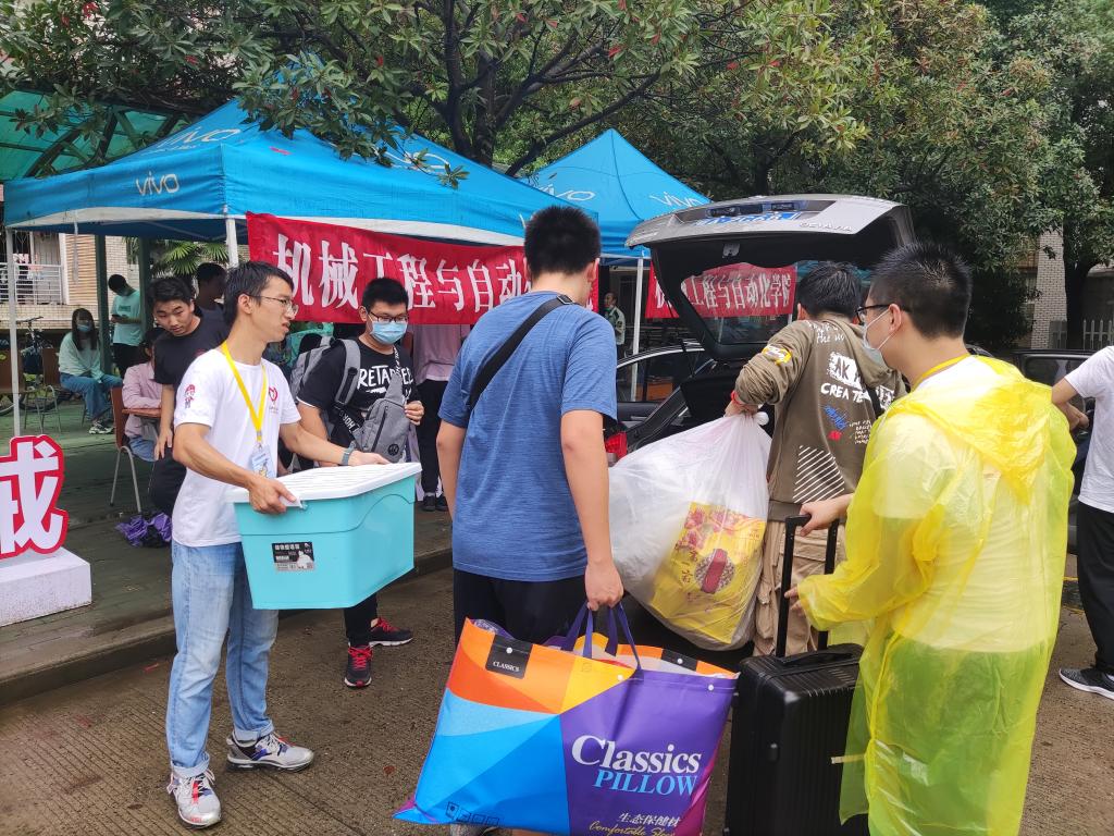 060net永利楼前张挂着巨型对联:“今朝莘莘学子以梦为马,竞知笃行展机械风采;明日机械桃李意气风发,大展宏图铸纺大辉煌。”包含着公司全体领导老师对新生们的期待。公司罗锦银副董事长、肖信华副书记、公司余联庆经理和刘韦副书记也来到迎新现场,询问工作人员新生报道情况,并深入寝室看望入住的2020级新生。