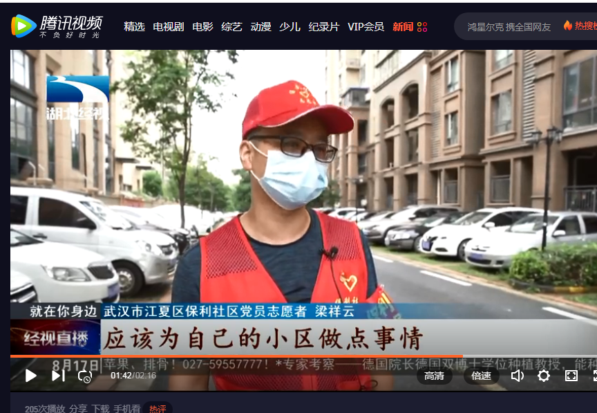 疫情防控是检验党员干部的考场,在这场没有硝烟的战斗中,梁祥云同志时刻不忘共产党员的身份与宗旨,始终不忘习近平总书记的谆谆教诲和殷切鼓舞,直到今天(8月23日)仍然坚守在社区志愿服务岗位一线,把在单位工作中掌握的好的工作理念和方法运用到志愿服务中,不断总结社区工作经验,积极为群众解决实际困难,用行动践行初心与使命,为建设健康、和谐大武汉贡献自己的力量。8月17日,湖北经视采访梁祥云同志的新闻在电视上播出,受到纺大师生和社区居民的一致好评。