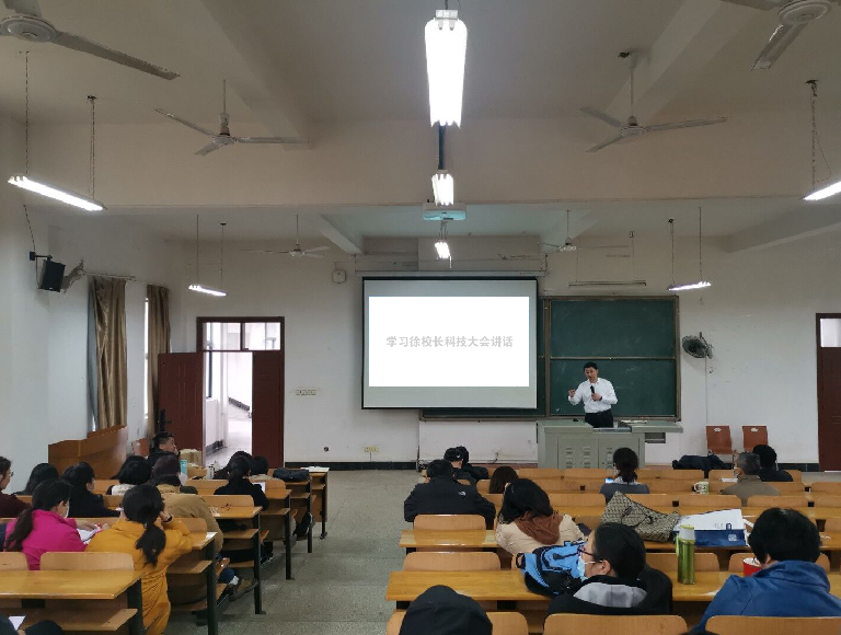 6月9日,060net永利召开全体教职工大会,经理余联庆传达了公司2022年科技创新大会精神,并带领教职工学习了徐卫林院士在科技创新大会上做的题为《发扬创新精神 激发科研活力》的讲话。