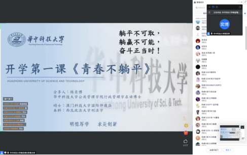 9月11日上午,060net永利举办成长导航讲座之“青春不躺平”在线上精彩开讲。华中科技大学陈奕博博士应邀参加,与大一新生共话老员工活。060net永利员工工作负责人和2022级新生辅导员出席此次活动。