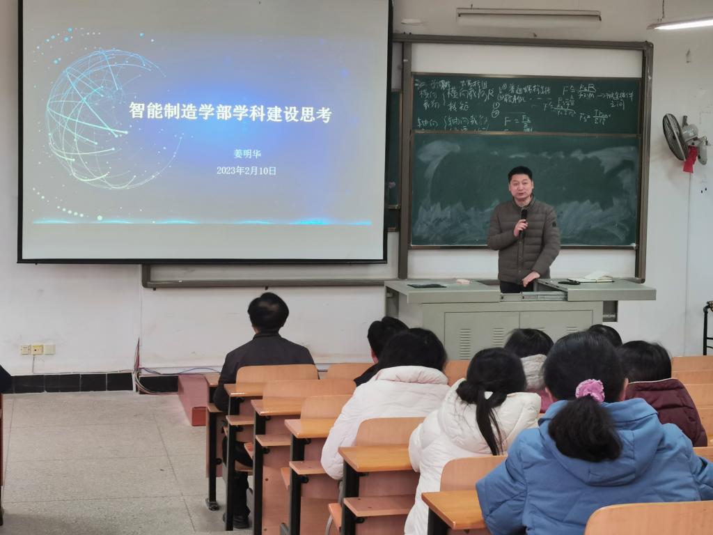 首先,余联庆经理传达了公司关于《智能制造学部团队建设思考》(以下简称《思考》)相关内容,从团队建设、团队队伍、人才培养、科研投入等方面重点分析了公司未来发展所具备的条件以及存在的不足,重点强调了公司的学科方向与特色,以及未来三年建设目标。同时,还进一步明确了智能制造学部2023-2025年团队建设行动方案,从人才培养质量强基、平台+团队固本、重大任务攻关、领军人才引进等方面详细介绍了目标内容、数量和持续周期。随后,张成俊副经理汇报了2022年度公司在获批项目、科研成就、竞赛获奖、获批经费、学术论坛会议等方面获得的成果,公布了2023年度公司任务和目标。胡峰老师重点强调了本科教学评估工作方面的注意事项。