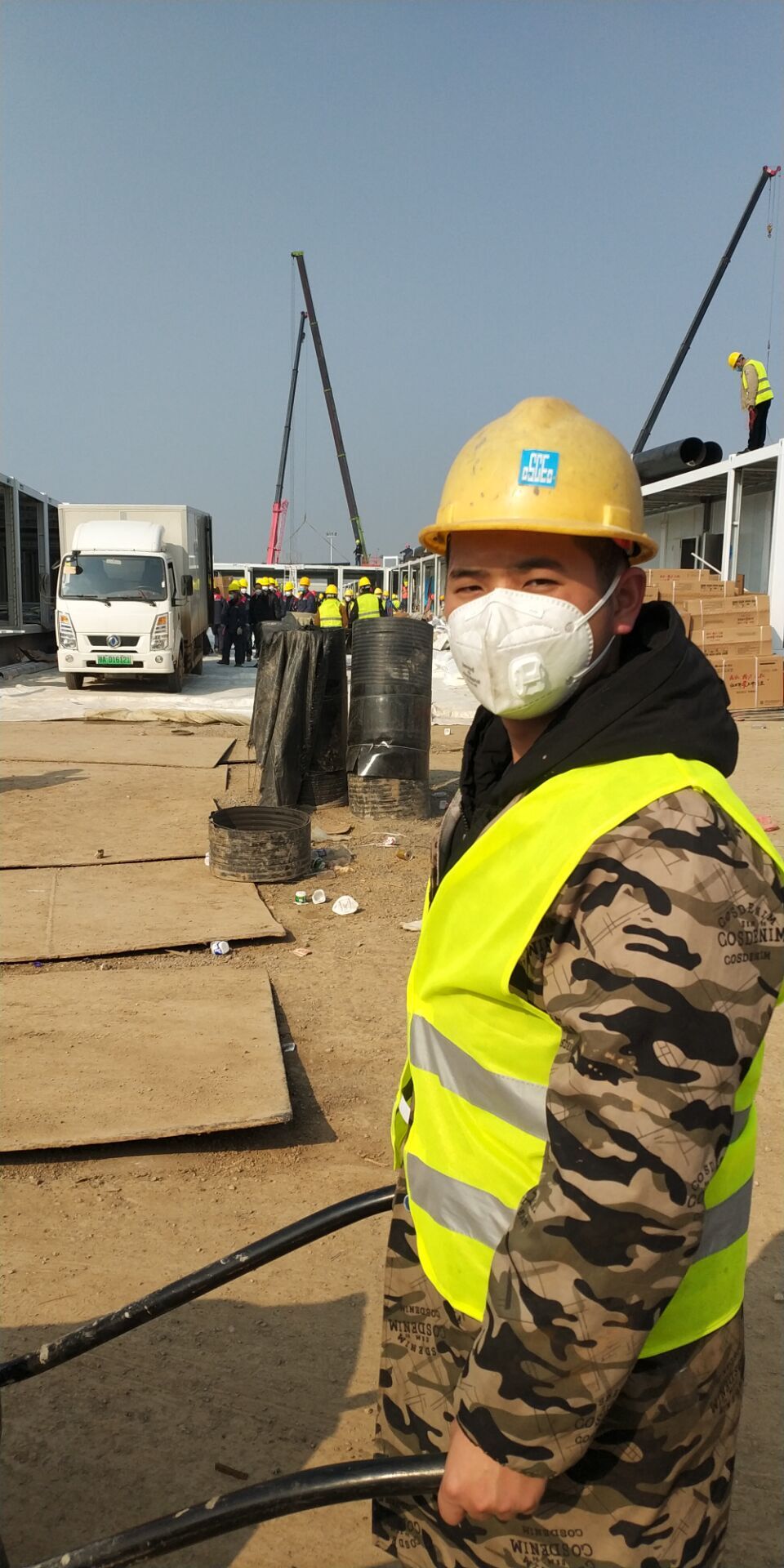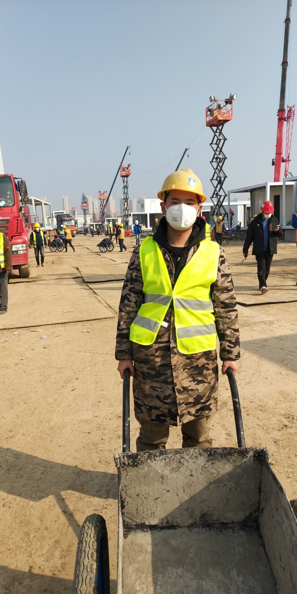 看着父亲每天忙碌的身影,在征得父亲的支持后,饶灿灿没等和母亲商量也偷偷让父亲帮他报了名。在施工方审核通过后,2月1日,饶灿灿一大早便跟随父亲一起来到了雷神山施工现场。走进工地的那一刻,看着工人的忙碌,听着机器的轰鸣,热火朝天的施工场景再次让他对中国速度和中国力量感到深深的震撼。