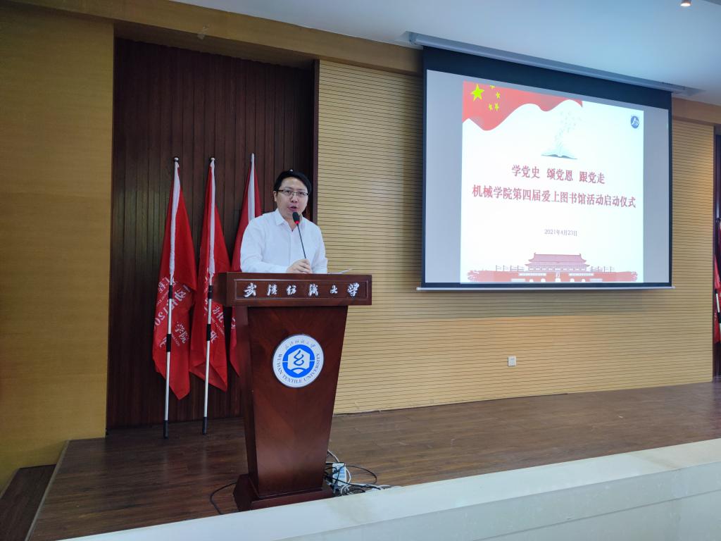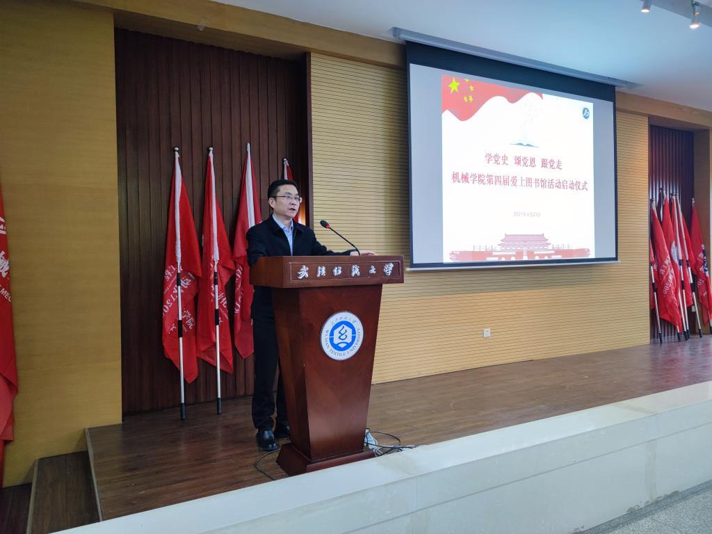 刘韦副书记在致辞中鼓励青年老员工要养成读书的好习惯,多读书、勤读书、读好书。在知识的海洋里徜徉,在红色革命书籍里汲取力量,做到学史明理、学史增信、学史崇德、学史力行,以优异成绩为建党一百周年献礼。熊少平馆长向大家详细介绍了图书馆数字化文献建设情况,希望同学们充分利用馆藏资源,积极组织开展形式多样的阅读推广活动,在阅读中品位墨香,寻找精神家园。员工代表自动化11801班王意向大家发出倡议,号召同学们把读书由外在要求转化为内在自觉,养成正确的读书观,认真学习马克思主义经典著作,学习古今中外优秀传统文化书籍,广泛借阅专业学习所需要的各种知识书籍。