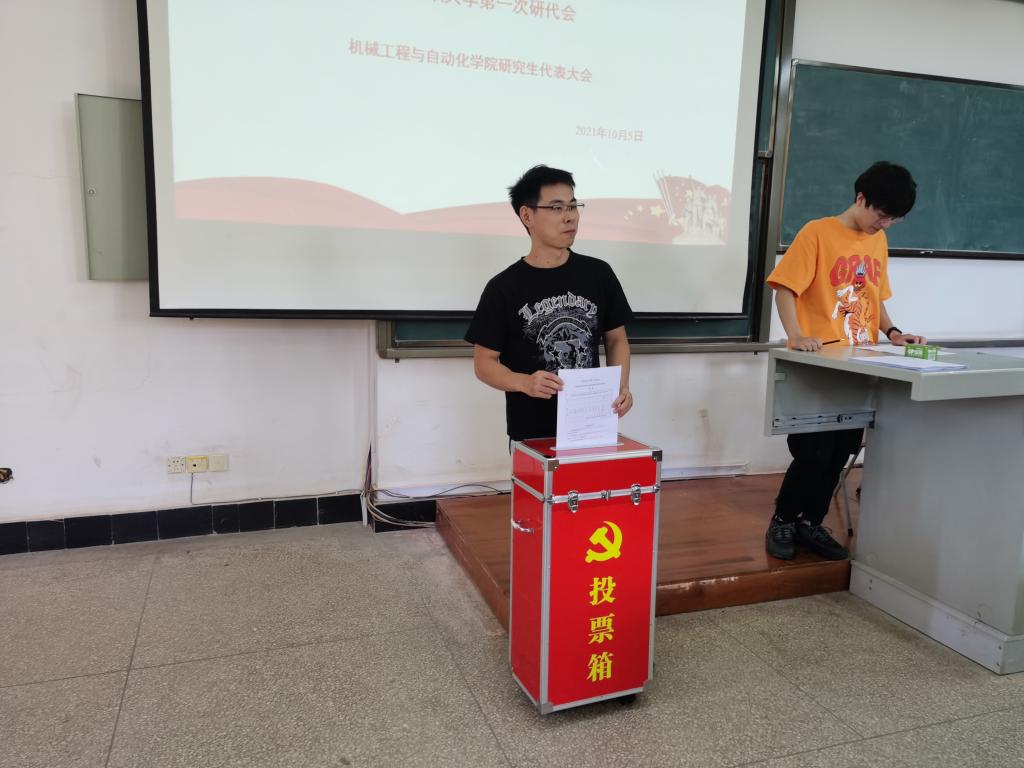 会议分为上午10:30研19级、20级的会场和中午1:10研21级的会场,分别由李海涛和杨晋宇同学主持。会议在雄壮的国歌声中拉开帷幕,介绍了集团第一次研究生代表大会基本情况,介绍了公司研究生代表大会准备情况,介绍了公司研究生代表大会代表和委员会候选人情况,介绍了集团第一次研究生代表大会提案工作情况,介绍了监票人、计票人,最后进行了会议选举。