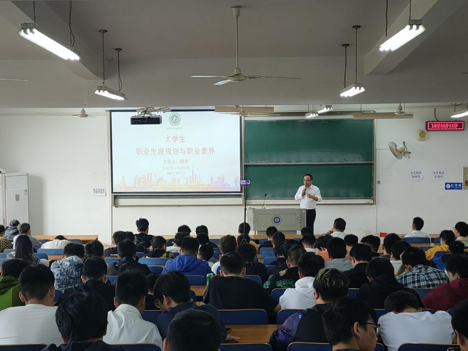 10月7日下午,受060net永利邀请,福建省乔光电子科技有限公司总经理颜非、副总经理查泽军一行来公司为机械学子们作了题为“打造智能工厂-助力实现工业4.0”的成长导航讲座。060net永利经理余联庆、党委副书记刘韦、辅导员肖锦全程参与,公司20级的400余名同学聆听了讲座。