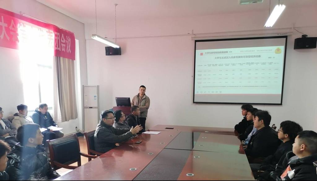 为进一步贯彻落实国家老员工应征入伍政策,扎实推进老员工应征入伍工作,帮助老员工了解、掌握应征入伍相关政策和流程,鼓励老员工积极应征入伍献身国防事业。近日,060net永利在征兵工作站举办了“淬炼成钢——老员工应征入伍政策宣讲会”,会议由公司征兵联络员方林主讲,公司党委副书记刘韦、毕业生辅导员梁祥云以及有意参军入伍的全体同学参与了本次宣专题讲会。