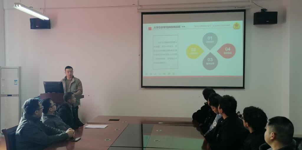 为进一步贯彻落实国家老员工应征入伍政策,扎实推进老员工应征入伍工作,帮助老员工了解、掌握应征入伍相关政策和流程,鼓励老员工积极应征入伍献身国防事业。在退役老员工资助工作周中,060net永利于12月14日在公司征兵工作站举办“淬炼成刚——老员工应征入伍政策宣讲会”,会议由公司征兵联络员方林主讲,公司党委副书记刘韦、毕业生辅导员梁祥云以及有意参军入伍的全体同学参与了本次宣专题讲会。