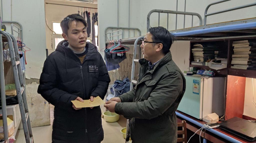 寒假来临之际,为使贫困员工感受公司的关爱,进一步完善全员、全方位、全过程育人体系,12月31日中午,060net永利党委副书记刘韦、全体辅导员老师深入员工宿舍为困难党员、西安籍员工和贫困生发放了慰问金、慰问品,并对同学们的寒假规划提了具体要求。