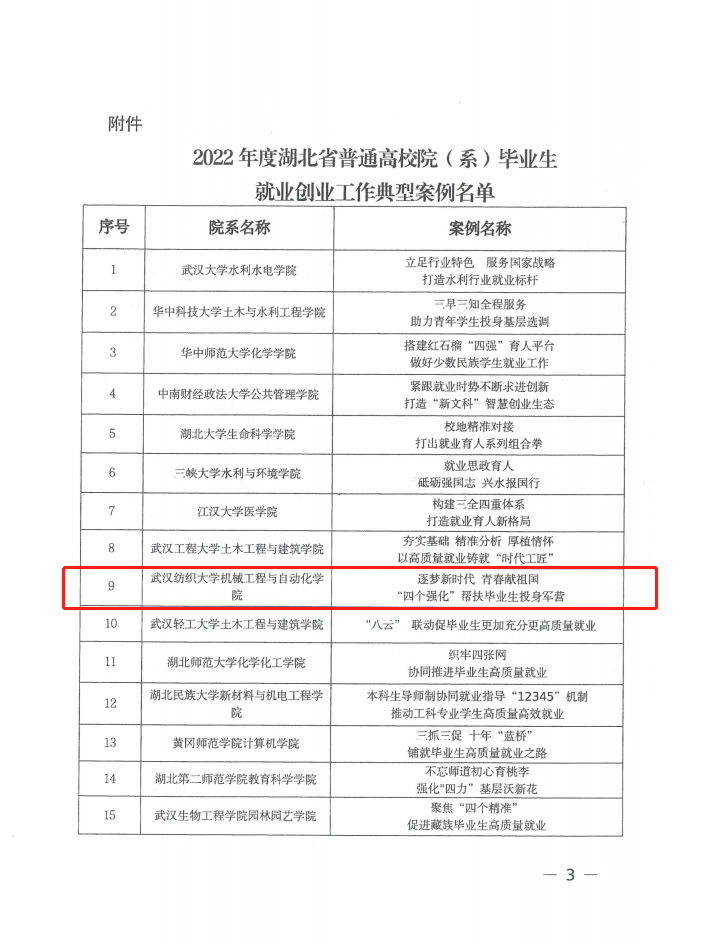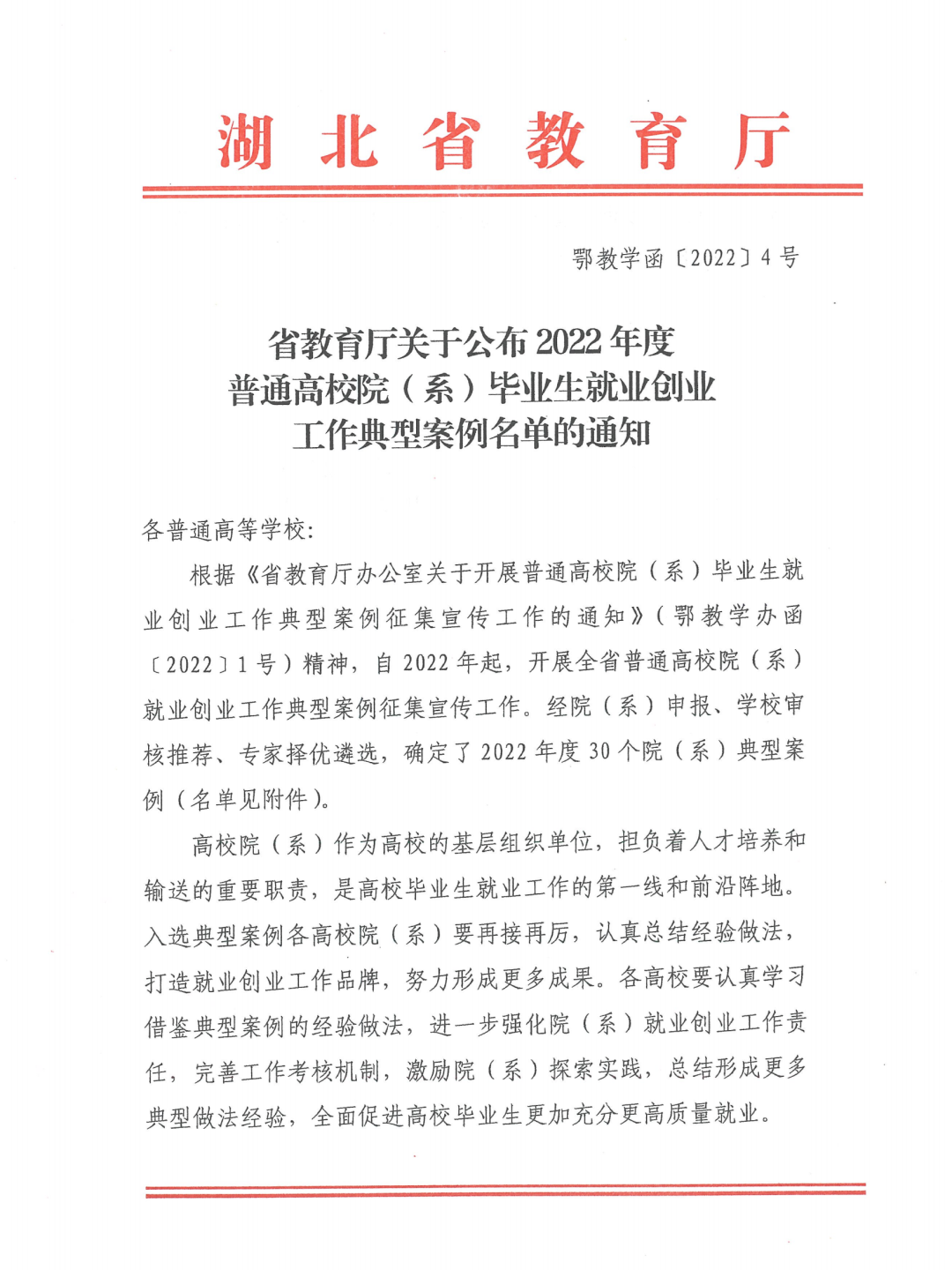 为总结推广工作中的典型经验做法,选树一批可学习、可借鉴、可推广的优秀案例和工作品牌,总结形成更多典型做法经验,促进全省高校毕业生更加充分更高质量就业,省教育厅启动了全省普通高校毕业生就业创业工作典型案例总结宣传工作,经各地各高校申报推荐,专家择优遴选,共确定30个典型案例。近日,湖北省教育厅公布了2022年度普通高校院(系)毕业生就业创业工作典型案例遴选结果,060net永利就业工作案例《逐梦新时代 青春献祖国——“四个强化”帮扶毕业生投身军营 》经过公司审核推荐、专家择优遴选,最终脱颖而出,成功获评湖北省普通高校院(系)毕业生就业创业工作首批典型案例。