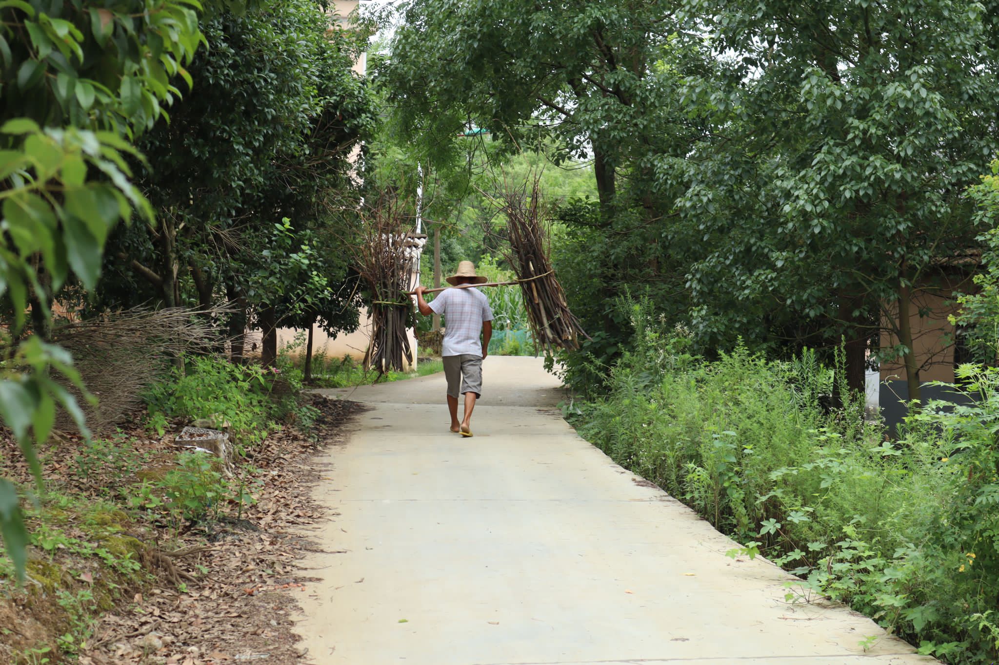 图为在走访完毕后返程途中遇到一位老人家从山上拾材回家的情景。 中国青年网通讯员 吴家萱 供图