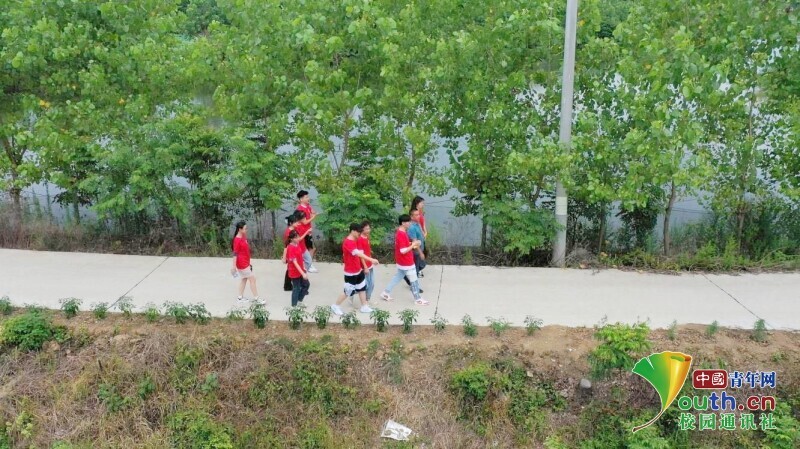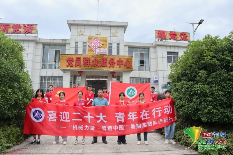 图为实践团队在独山村居委会门口与任书记的合影留念。中国青年网通讯员 吴家萱 供图