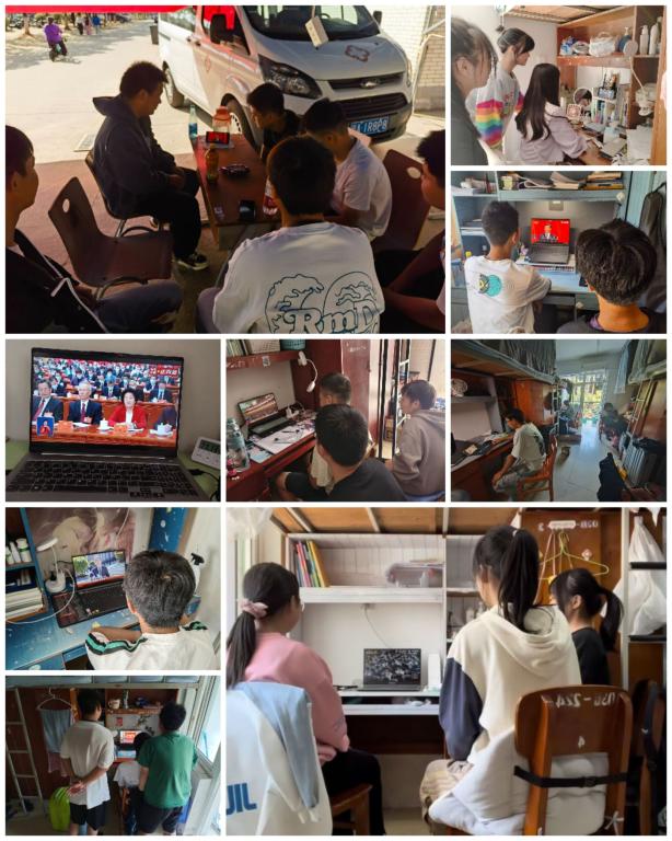 首先,各年级辅导员和班主任带领同学们回顾19次党代会、解读党的二十大的重要意义,现场和大家一起学习党的二十大报告内容。