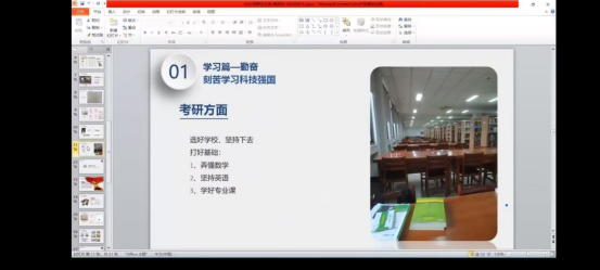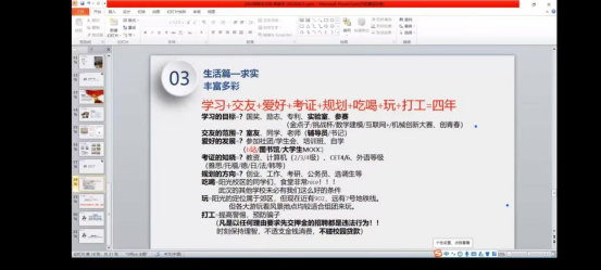 本次会议邀请了060net永利18级学长杨政宇作交流分享,杨政宇首先谈到了员工的本职是学习,勤奋是学好的基础,其次他建议同学们要积极参加公司以及校级的比赛和活动。会议中,杨政宇还展示了他考研的日常生活,鼓励同学们加入铁人班。随后,他建议同学们要提前规划好未来的学习和生活,并提供了一些建议。