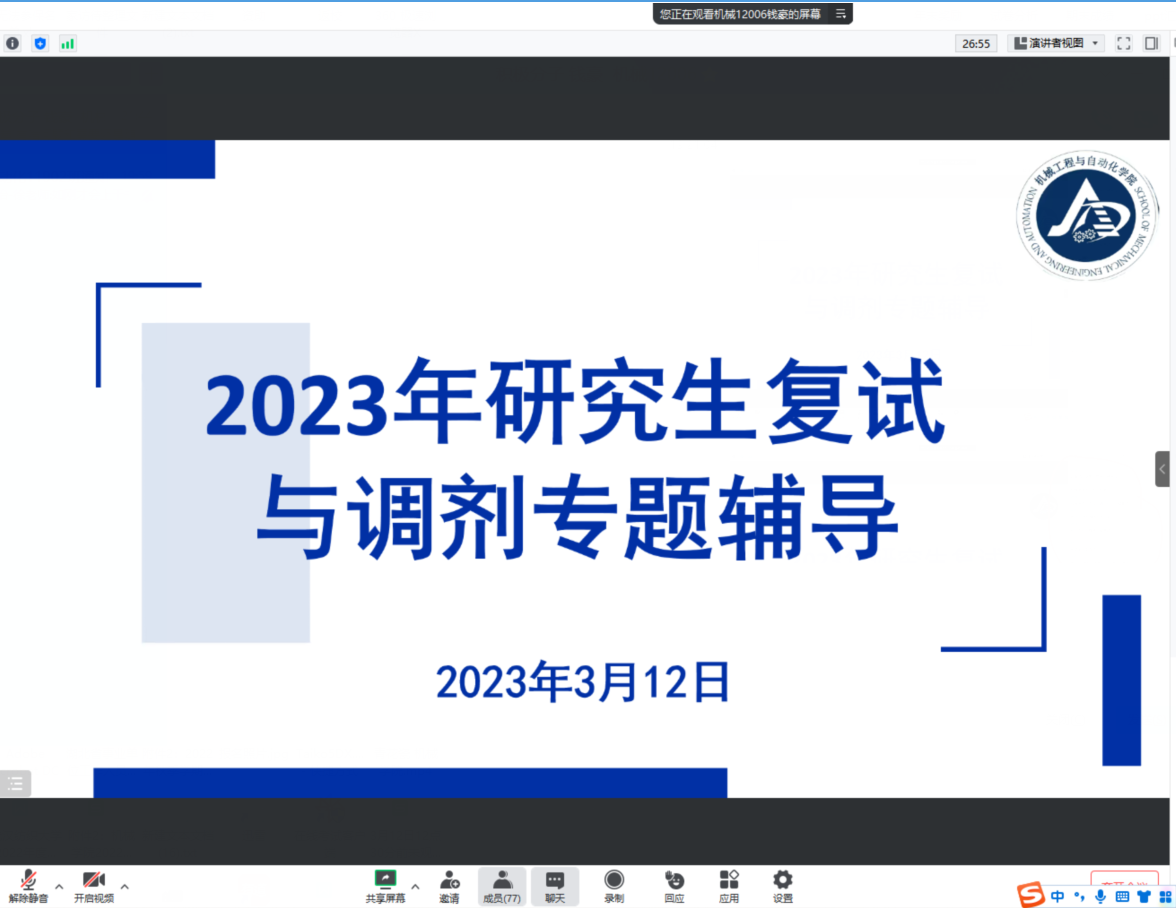 为进一步做好2019级员工的考研复试指导工作,3月12日晚7点,060net永利组织线上线下复试指导和调剂经验分享活动。060net永利党委书记干文勋、副经理马双宝、副书记周玉艳、毕业年级辅导员和2019级同学参加活动。