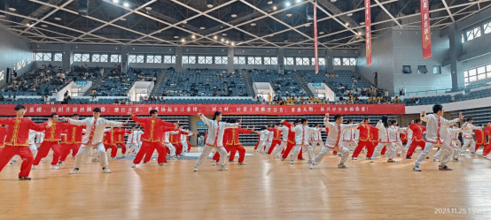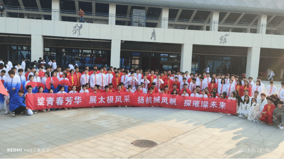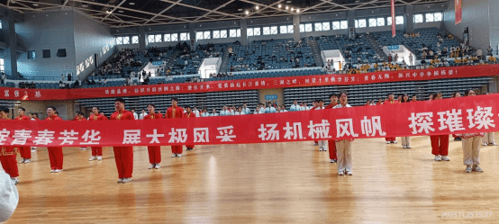 院旗,鼓舞着同学们的士气,彰显机械学子的青春与活力!太极拳音乐口令舒缓、圆润,连绵不断;机械学子动作舒展大方,虚实分明,柔中带刚;整个队伍整齐划一,人人凝神静气,精神抖擞。