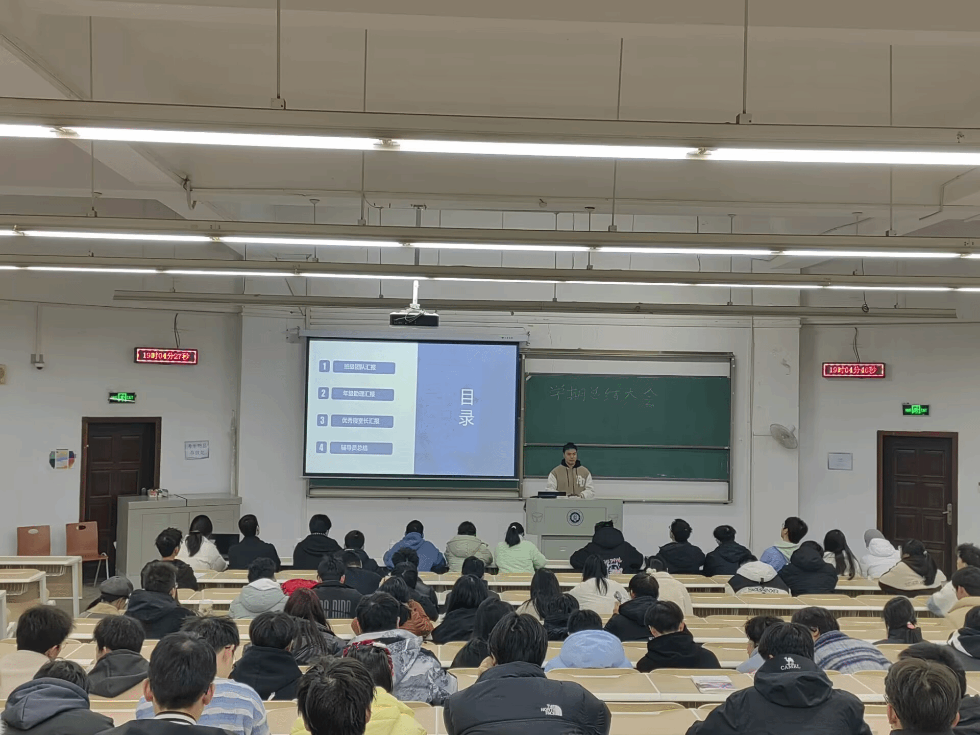 2024年1月14日,060net永利在3号教学楼t202教室开展“学期总结大会”。本次活动旨在展示本学期班级、年级助理、优秀寝室成果,总结不足,向大家展示优秀做法并且互相学习改进。本次活动由23级辅导员主持,060net永利23级14位班委代表,14位年级助理及2位优秀寝室长到场分享,全体班委、年纪助理到场聆听。