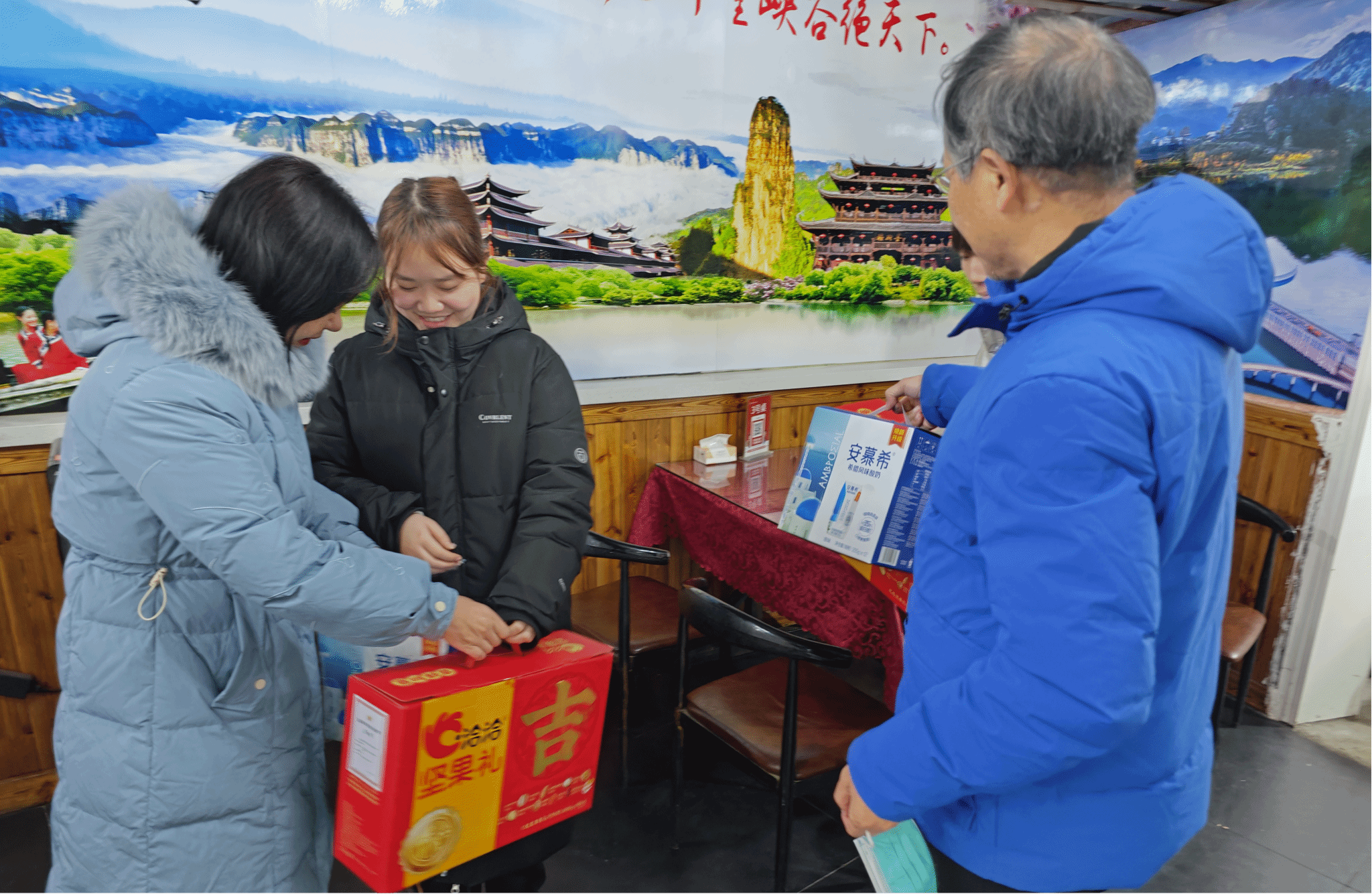 干书记详细了解员工的兼职工作和生活情况,叮嘱员工要注意防寒保暖、规律作息、保护好自己,同时,向他们致以新春问候,询问员工后续安排,回家车票有没有买好……鼓励他们要树立远大的目标,将吃苦耐劳的宝贵品质转化为实现梦想的强大动力。