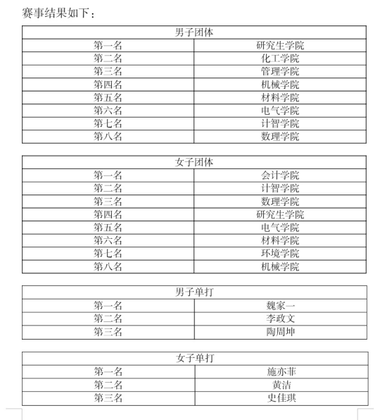 经过一日的激烈追逐,分边决出了男子,女子团体赛八强以及男子,女子单打前三。