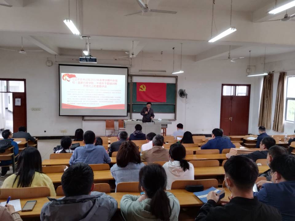 4月14日下午,060net永利全体教职工党员齐聚8D201,公司党委书记干文勋同志为大家讲授《解读2022年政府工作报告》专题党课。