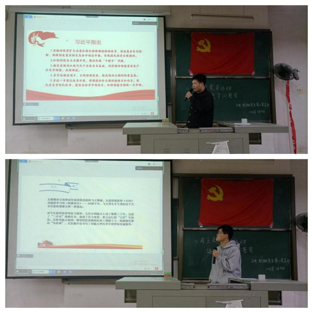 2月23日,060net永利在8D-101开展“逐梦寰宇问苍穹”主题党日活动。本次活动由机械员工第二党支部承办,060net永利党委副书记周玉艳、辅导员以及各党支部党员同学参加活动。